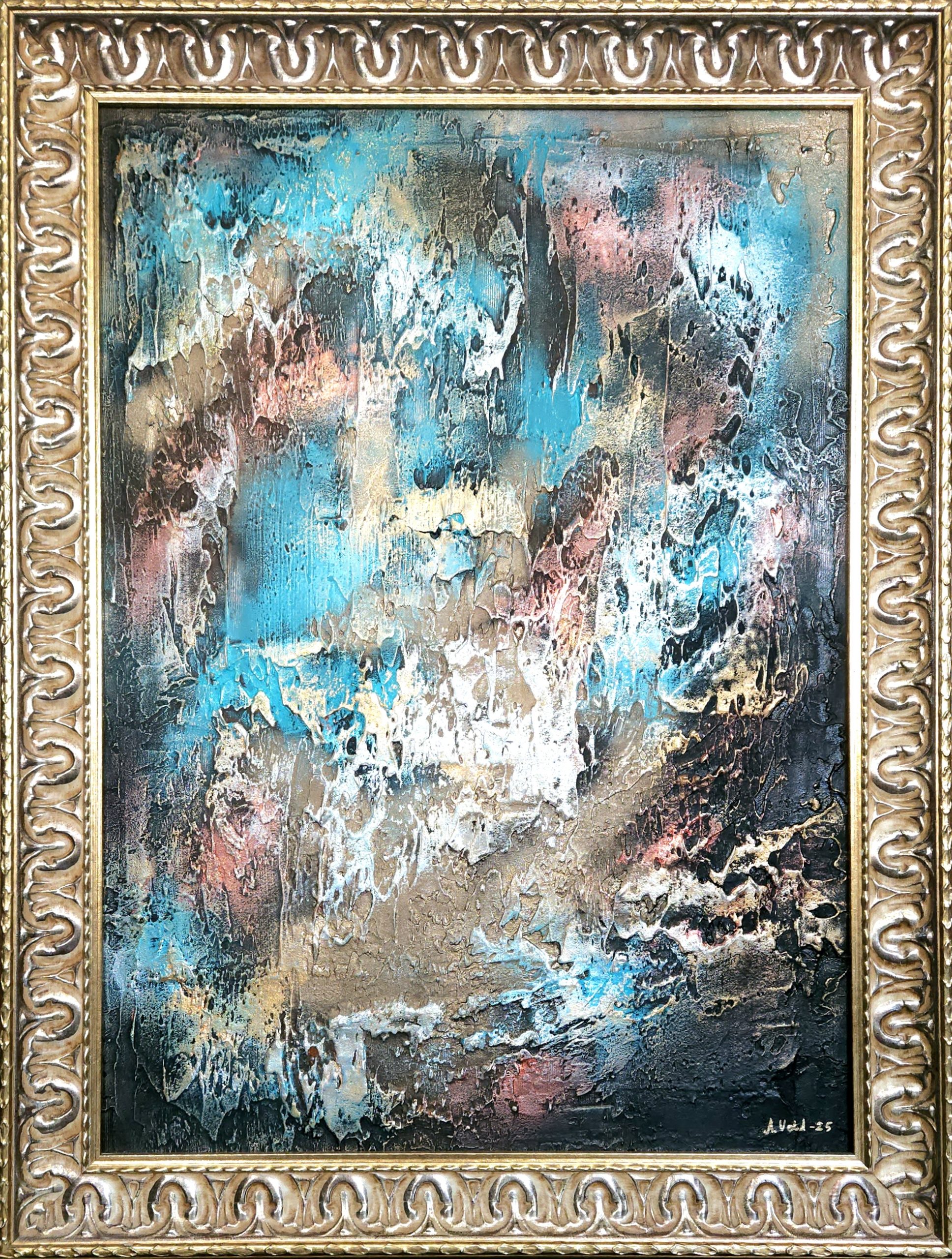 • Texture: Rich textures with layers of acrylics. Gold and copper